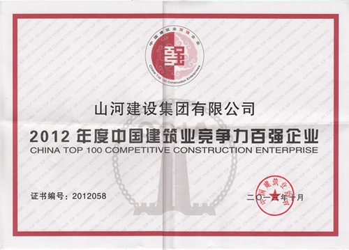 在日前召開的2012年度中國(guó)建筑業(yè)雙百?gòu)?qiáng)企業(yè)發(fā)布會(huì)上,山河建設(shè)集團(tuán)有限公司憑借較強(qiáng)的市場(chǎng)競(jìng)爭(zhēng)力、先進(jìn)的企業(yè)管理水平、良好的社會(huì)品牌,再次獲得“中國(guó)建筑業(yè)競(jìng)爭(zhēng)力百?gòu)?qiáng)企業(yè)”稱號(hào)。