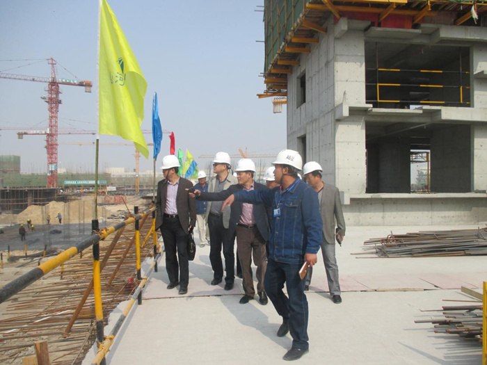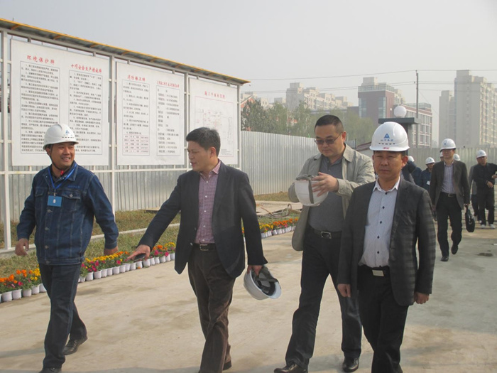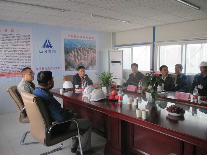 2013年10月28日上午9:30,集團公司董事長程理財一行到山河集團承建的鄭州祥營還遷區(qū)項目部檢查指導(dǎo)工作,項目經(jīng)理馬文敏及全體管理人員熱烈歡迎。
