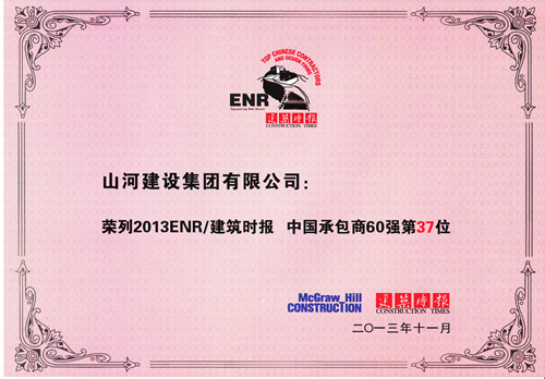 11月22日,2013ENR/建筑時報“中國承包商和工程設(shè)計企業(yè)雙60強(qiáng)”頒獎典禮在廣西南寧市隆重舉行,住房和城鄉(xiāng)建設(shè)部政策研究中心、中國建筑業(yè)協(xié)會、中國勘察設(shè)計協(xié)會、廣西住建廳、廣西建筑業(yè)聯(lián)合會、廣西勘察設(shè)計協(xié)會等領(lǐng)導(dǎo)出席了頒獎典禮并致辭。山河集團(tuán)成功入選,位列第37位,這是集團(tuán)首次申報并首次成功入選中國承包商60強(qiáng)企業(yè)。