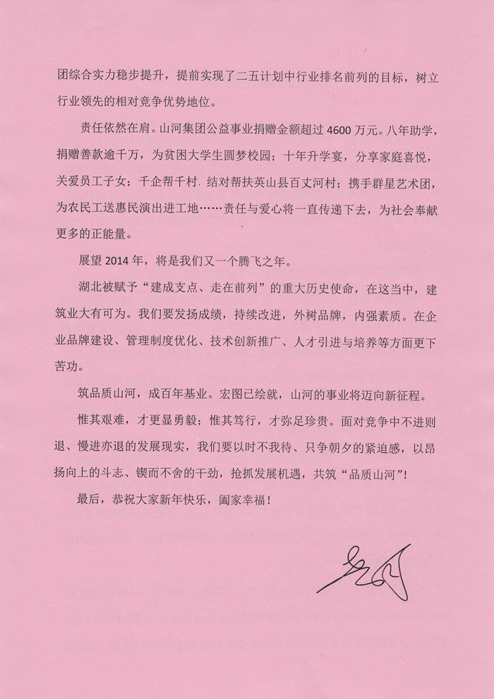 黨委書記舒先厚2014年新年致辭