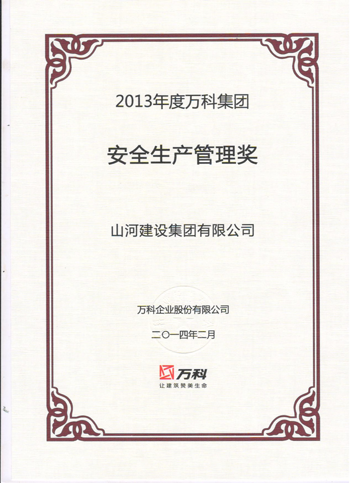 春茗會(huì)上,萬科集團(tuán)首次向公眾發(fā)布了“2013年度合格供應(yīng)商名錄”,覆蓋了總承包、監(jiān)理、裝修總包、門窗、景觀、基礎(chǔ)工程、材料設(shè)備七大類供應(yīng)商共計(jì)824家企業(yè),山河建設(shè)集團(tuán)有限公司獲得“萬科企業(yè)合格供應(yīng)商”稱號(hào),項(xiàng)目經(jīng)理馬文敏代表集團(tuán)公司獲評(píng)“安全生產(chǎn)管理獎(jiǎng)”。