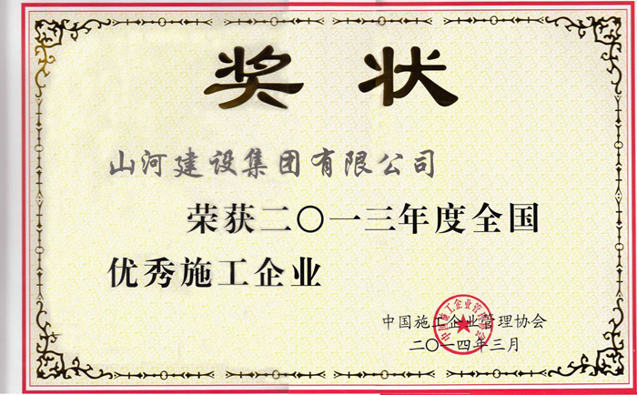 全國優(yōu)秀施工企業(yè)評選由中國施工企業(yè)管理協(xié)會主辦,每年進行一次。旨在表彰先進,樹立典型,推廣經(jīng)驗,促進企業(yè)發(fā)展;弘揚優(yōu)秀施工企業(yè)創(chuàng)新進取、頑強拼搏、奉獻社會的精神。經(jīng)“全國優(yōu)秀施工企業(yè)”評審委員會審定,山河集團在眾多企業(yè)中脫穎而出,以優(yōu)異成績獲得殊榮。