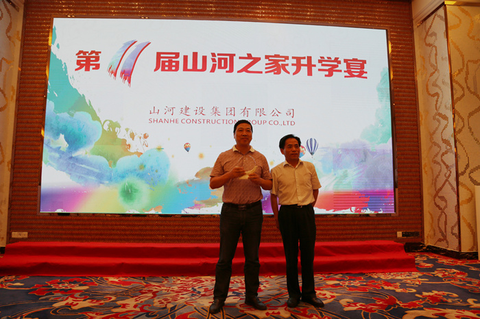 山河集團(tuán)每年都會(huì)定期舉辦學(xué)子宴和捐資助學(xué)活動(dòng),山河人無私助學(xué)的善舉給千千萬萬個(gè)寒門學(xué)子照亮了求學(xué)之路,也給他們的家庭帶來了希望和改變。為表彰在2014年第九屆捐資助學(xué)活動(dòng)中的優(yōu)秀代表,升學(xué)宴的第一個(gè)環(huán)節(jié)就是由集團(tuán)公司黨委書記舒先厚向19位項(xiàng)目經(jīng)理頒發(fā)“慈善之星”的獎(jiǎng)杯,同時(shí)授予湖北公司、新疆公司先進(jìn)單位的榮譽(yù)稱號(hào)。