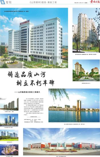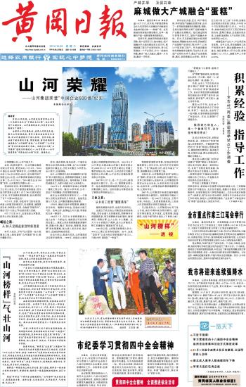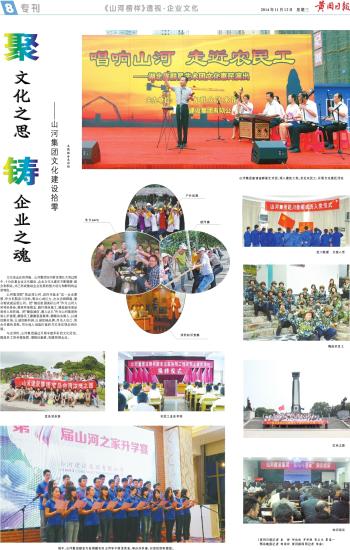2014年10月28日――11月12日,黃岡日報連續(xù)刊登了“山河榜樣”透視、“山河觀察”、“山河感悟”等系列報道及圖片專版,對山河集團(tuán)的發(fā)展軌跡進(jìn)行了梳理,展示了集團(tuán)的閃光足跡和輝煌成就。