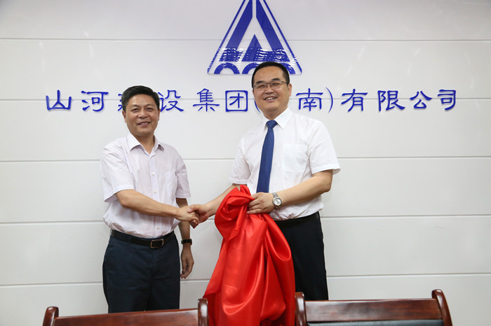 山河集團(tuán)董事長(zhǎng)程理財(cái)與河南公司總經(jīng)理馬文敏共同為河南公司揭牌