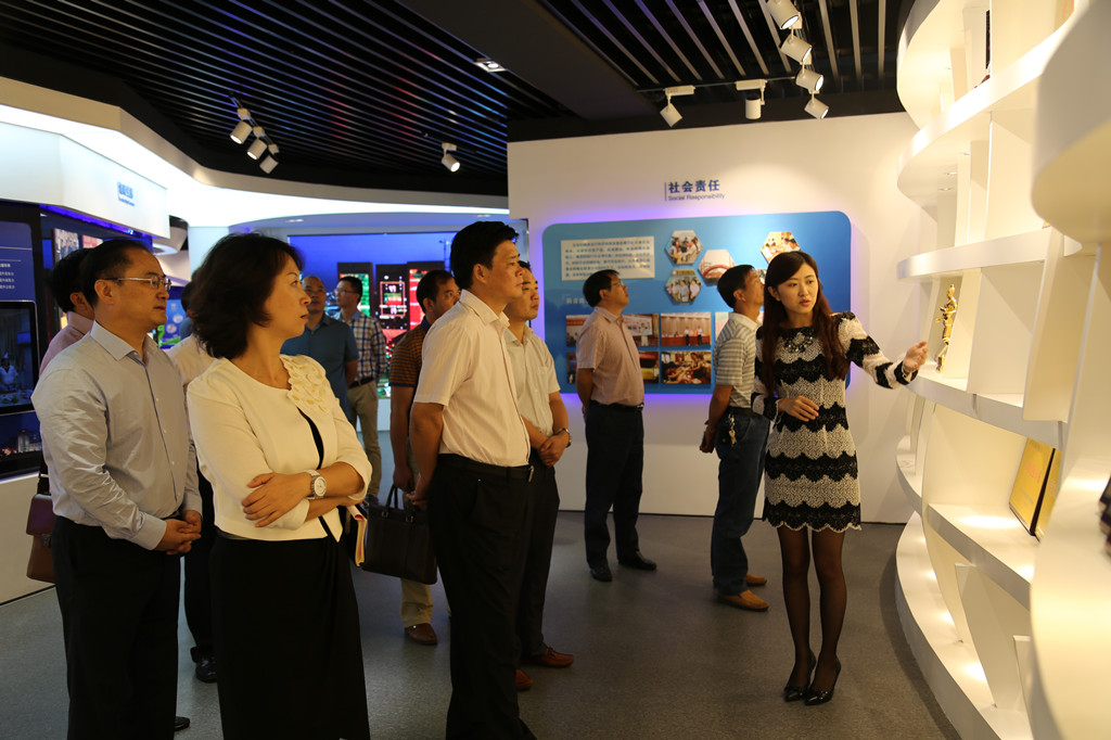 彭新軍一行領(lǐng)導(dǎo)首先參觀了企業(yè)展示中心,對山河集團(tuán)的發(fā)展歷程、代表工程、企業(yè)榮譽(yù)、企業(yè)文化進(jìn)行了全面系統(tǒng)的了解。