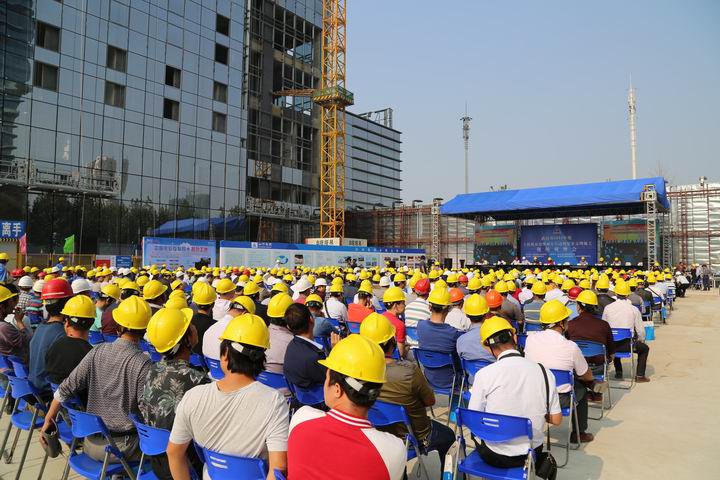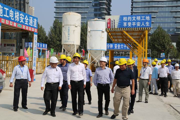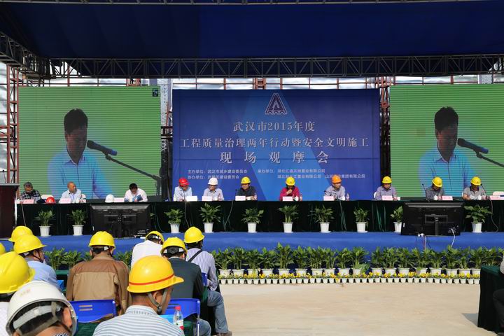 2015年10月22日上午,武漢市2015年度工程質量治理兩年行動暨安全文明施工現場觀摩會在山河集團湖北公司匯通新長江中心項目召開。湖北省質安總站副站長周偉,武漢市稽查站總工程師曹立新、質檢站處長李華、安全站副站長熊威,武昌區(qū)文明辦主任肖永高、安監(jiān)局局長何學軍、建委書記周旗福、建委副局長王水泉、建委副主任山峰,湖北新長江置業(yè)有限公司董事長陳學明,北京縱橫監(jiān)理有限公司副總經理張忠,山河集團董事長程理財、副總經理程秋明、湖北公司常務副總經理柯為正、副總經理羅定軍等領導參加了會議。武漢市建管辦楊凡主任主持會議。