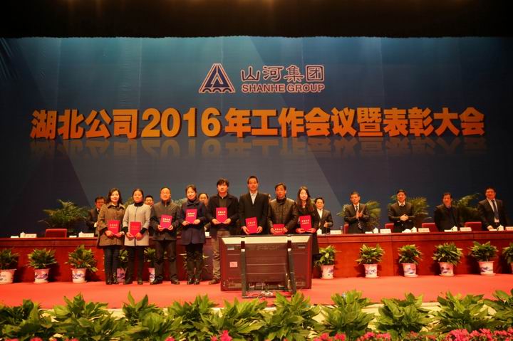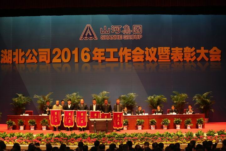 2月27日上午,山河集團(tuán)湖北公司2016年工作會(huì)議暨表彰大會(huì)在洪山禮堂一號(hào)廳隆重舉行。會(huì)議總結(jié)了2015年湖北公司各項(xiàng)重點(diǎn)工作完成情況,部署了2016年湖北公司發(fā)展規(guī)劃,并對(duì)優(yōu)秀項(xiàng)目經(jīng)理部及優(yōu)秀個(gè)人進(jìn)行了表彰。山河集團(tuán)董事長(zhǎng)程理財(cái)、黨委書記舒先厚、總經(jīng)理龔衛(wèi)國、執(zhí)行總經(jīng)理姚偉、常務(wù)副總經(jīng)理林中茂、湖北公司常務(wù)副總經(jīng)理柯為正等領(lǐng)導(dǎo)出席本次會(huì)議。會(huì)議由湖北公司人事行政總監(jiān)李穎主持。