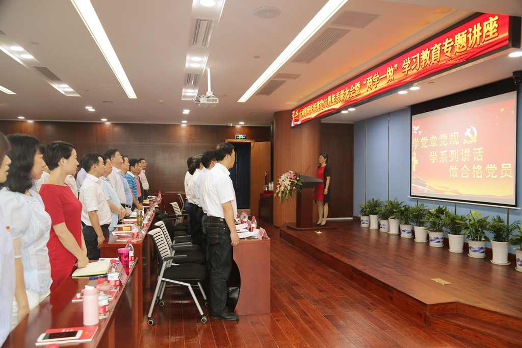 最后,集團(tuán)公司董事長、黨委委員程理財帶領(lǐng)與會人員回顧了建黨95年的發(fā)展歷程,與大家分享了學(xué)習(xí)黨課的體會。他表示,作為一名老黨員,自己將帶頭踐行“兩學(xué)一做” 學(xué)習(xí)教育,腳踏實地做合格黨員。他在講話中要求,全體黨員要“平常時候看得出來、關(guān)鍵時刻站得出來、危急關(guān)頭豁得出來”,為自己、為企業(yè)、為社會努力工作。