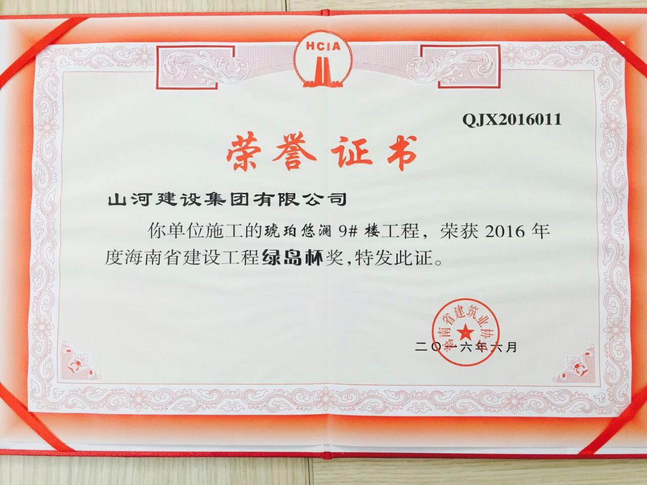 7月14日,海南省建筑業(yè)協(xié)會(huì)組織開(kāi)展的2016年度海南省建設(shè)工程“綠島杯”獎(jiǎng)的評(píng)選工作已經(jīng)結(jié)束,經(jīng)過(guò)嚴(yán)格的評(píng)審和公示,山河集團(tuán)海南公司承建的琥珀悠瀾項(xiàng)目9#樓榮獲海南省建設(shè)工程“綠島杯”。