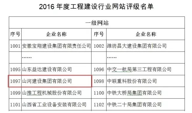 近日,由中國(guó)施工企業(yè)管理協(xié)會(huì)開展2016年度工程建設(shè)行業(yè)網(wǎng)站評(píng)級(jí)活動(dòng)中,山河集團(tuán)官網(wǎng)以完善的功能和良好的品牌體驗(yàn)被評(píng)為“一級(jí)網(wǎng)站”榮譽(yù)稱號(hào)。
