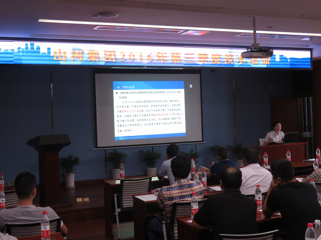 會上,技術(shù)部熊燕首先對規(guī)范要求、編制流程、方案內(nèi)容、構(gòu)造措施、軟件操作、作圖要求、常見問題以及方案審批作了較為精細(xì)的講解;隨后,技術(shù)發(fā)展中心主任張明星對集團(tuán)公司最新修訂的《高大(支)模板技撐體系施工實(shí)施手冊》(第二版)進(jìn)行了宣貫,針對實(shí)施工手冊中的具體實(shí)施內(nèi)容和重點(diǎn)注意事項(xiàng)做了深入的解讀。