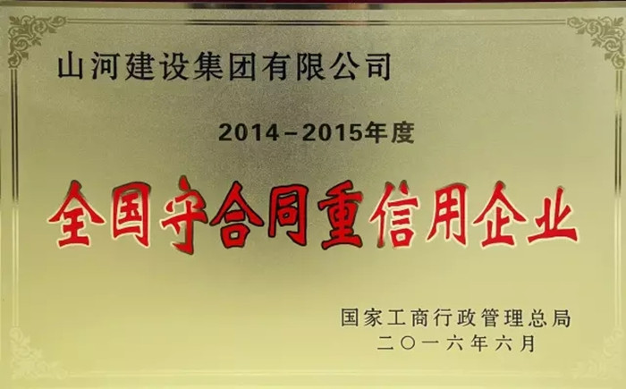 近日,山河集團被國家工商行政管理總局評為2014-2015年度“全國守合同重信用企業(yè)”,這是集團第二次獲此殊榮。