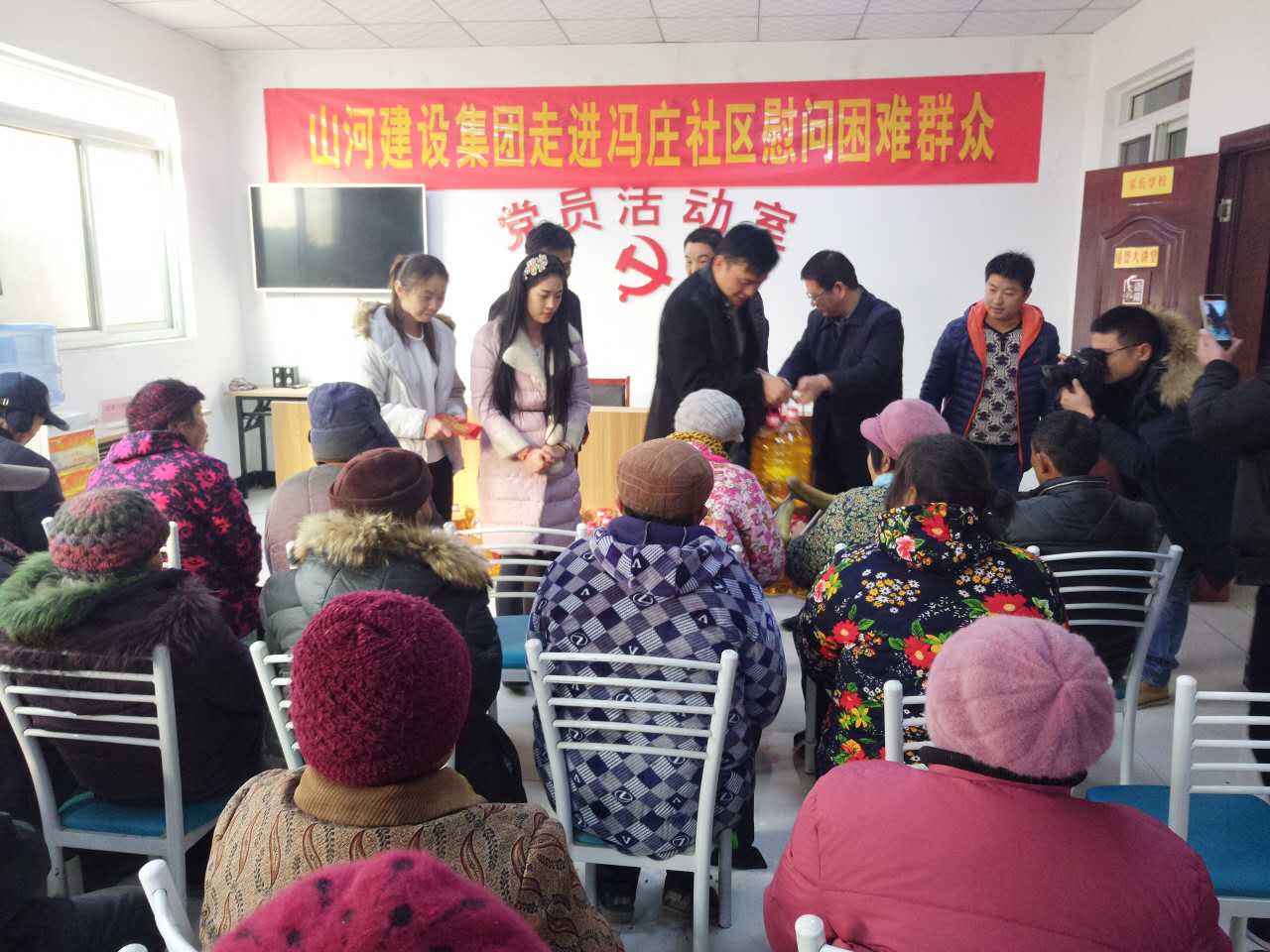 1月17日下午,值此新春來(lái)臨之際,為答謝云龍區(qū)政府、馮莊社區(qū)領(lǐng)導(dǎo)及社區(qū)群眾對(duì)山河集團(tuán)徐州公司的幫助,徐州公司總經(jīng)理陳偉率全體員工走進(jìn)馮莊社區(qū),慰問社區(qū)20個(gè)困難家庭。