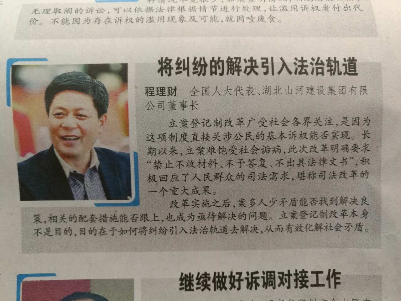 全國(guó)人大代表程理財(cái):將糾紛的解決引人法治軌道