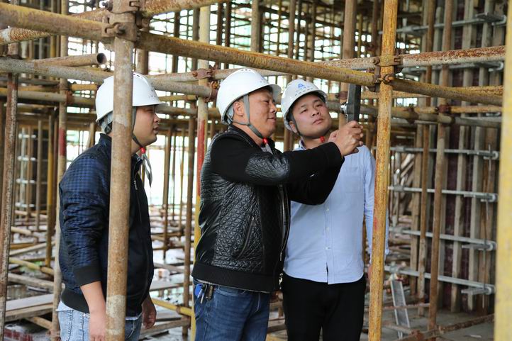 今年,他又被陳慧林調(diào)到新長江香榭東沙項(xiàng)目,身份還是安全員,目標(biāo)是創(chuàng)“楚天杯”。一到工地,他立馬仔細(xì)地進(jìn)行檢查,發(fā)現(xiàn)扣件緊固度不夠,固定不規(guī)范,工人不服氣說,我們一直是這樣固定,憑什么說不夠,尹定華當(dāng)即拿扭力扳手現(xiàn)場演示給他們看,扣件受力應(yīng)為40-65NM,但現(xiàn)場的扣件有許多只有10-20NM,大家才無話可說,馬上改正。