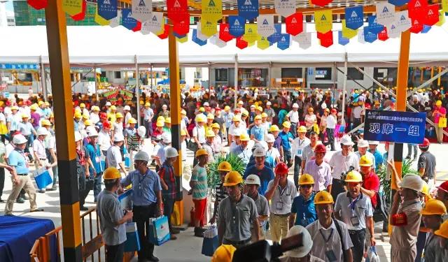 會議接待了省、市主管部門代表,優(yōu)秀施工企業(yè)代表、優(yōu)秀監(jiān)理企業(yè)代表及同行相關(guān)人員等千余人,對項(xiàng)目的質(zhì)量、文明施工現(xiàn)場進(jìn)行觀摩指導(dǎo)和學(xué)習(xí)交流?,F(xiàn)場觀摩分為6條不同路線,項(xiàng)目講解員帶領(lǐng)與會者有序 參觀了砌體抹灰、定型化防護(hù)、綠色施工、樣板引路等工程亮點(diǎn)。與會人員對項(xiàng)目的質(zhì)量管控、安全生產(chǎn)、文明施工、綠色施工等方面的先進(jìn)理念和創(chuàng)新點(diǎn)都給予了充分的肯定,參觀者贊不絕口。