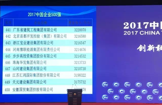 2017 中國企業(yè)500 強(qiáng)排行榜是由中國企業(yè)聯(lián)合會、中國企業(yè)家協(xié)會連續(xù)第16 次向社會公開發(fā)布,以企業(yè)的營業(yè)收入作為統(tǒng)計(jì)依據(jù)。2017中國企業(yè)500強(qiáng)的入圍門檻為283.11億元,較上年大幅提升39.65億元,提升幅度是自2002年首次發(fā)布中國企業(yè)500 強(qiáng)以來最大的一次。
