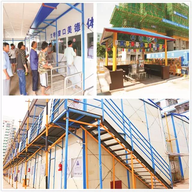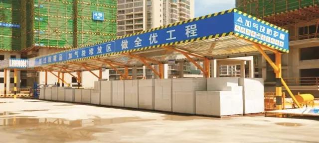 規(guī)范化的安全文明施工。項目部在安全教育方面采取多種形式,如:每日晨會進行班前講評,實行告別違章承諾簽名,設(shè)置高空墜落、安全帶、安全帽、平衡木體驗區(qū)等。在安全防護方面,項目部嚴格按照安全文明施工方案搭建了安全防護設(shè)施。此外,項目部設(shè)立了會議室、茶水間、休息室、宿舍區(qū)等場地;構(gòu)建了樓層臨時消防、滅火器、消防水泵系統(tǒng);項目部出入口實行人車分道, 24小時值班制,并設(shè)置視頻監(jiān)控,提供了舒適、安全、完善的施工環(huán)境。