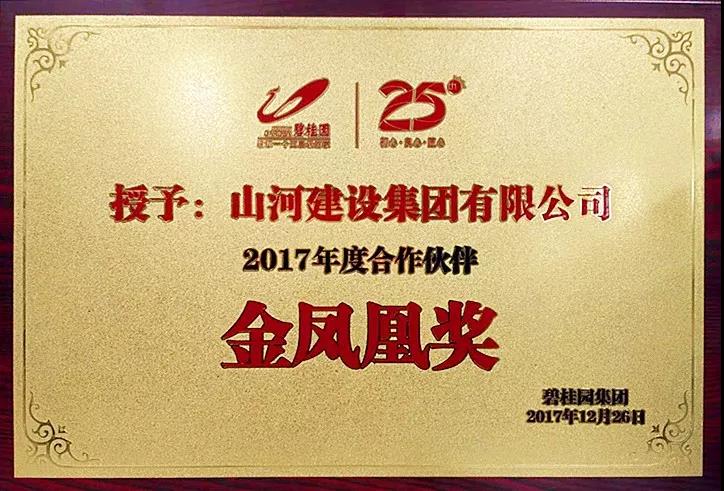 強(qiáng)強(qiáng)聯(lián)手 匯聚匠心 | 山河集團(tuán)獲評(píng)碧桂園2017年度優(yōu)秀合作伙伴“金鳳凰獎(jiǎng)”