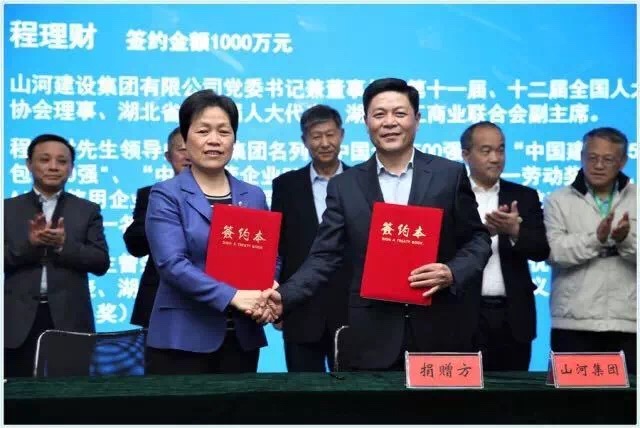 3月31日下午,在武漢大學舉行第三次人才引進基金集中捐贈簽約儀式上,作為武漢大學校友之友企業(yè)家、楚商20強杰出代表的山河集團黨委書記、董事長程理財,向武漢大學人才引進基金捐贈1000萬元,用于支持武漢大學“引鳳筑巢”,引進高端人才。