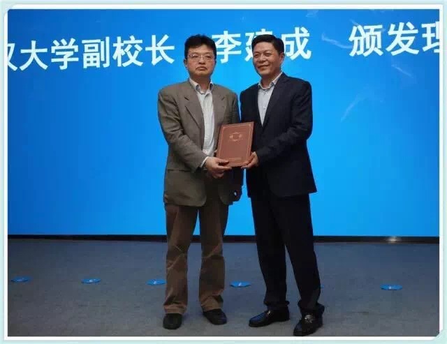 武漢大學黨委書記韓進、校長竇賢康、副校長李建成分別為董事長程理財頒發(fā)人才引進基金捐贈證書、武漢大學董事會董事聘書、人才引進基金理事會常務理事聘書。