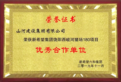 山河集團(tuán)過硬的工程質(zhì)量,優(yōu)秀的履約能力,得到了業(yè)主單位的高度肯定,被新希望集團(tuán)授予“優(yōu)秀合作單位”稱號。