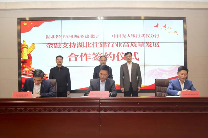 10月30日,由湖北省住房和城鄉(xiāng)建設(shè)廳、中國光大銀行武漢分行主辦的金融支持湖北住建行業(yè)高質(zhì)量發(fā)展合作簽約儀式在省住建廳舉行。湖北省人民政府副省長萬勇,省住建廳黨組書記、廳長李昌海,黨組副書記、副廳長張弘,光大銀行武漢分行黨委書記、行長譚夢湘,黨委委員、副行長唐紅斌等領(lǐng)導出席了簽約儀式。