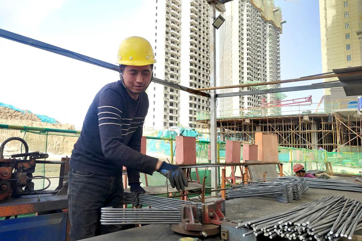 ▲咸陽三原鳳凰府項目工人在制作鋼筋