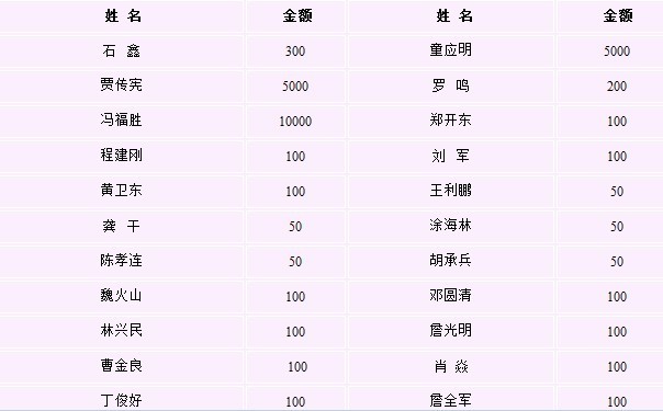 近日,從公司財務(wù)部獲悉,集團公司各個項目經(jīng)理、管理人員、基層員工積極響應號召,伸出團結(jié)友愛之手,紛紛慷慨解囊奉獻愛心,以下是部分捐助人員名單(按捐資時間排序):