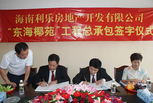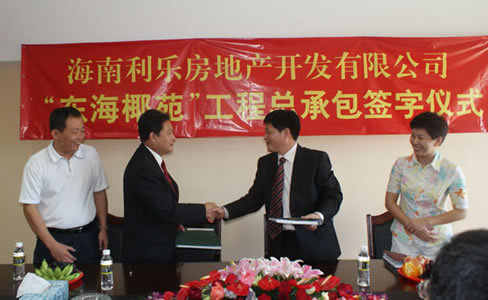 10月31日, 山河建設集團有限公司和海南利樂房地產開發(fā)有限公司在??谑邪肷交▓@海天商務樓舉行“東海椰苑”項目簽字儀式。