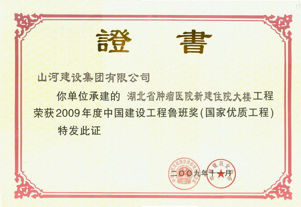 10月26日,中國建筑業(yè)協(xié)會(huì)正式發(fā)文,公布了2009年度中國建設(shè)工程魯班獎(jiǎng)評(píng)選結(jié)果。經(jīng)過初審、復(fù)查、公示等過程,共有99項(xiàng)工程獲獎(jiǎng),湖北省有3項(xiàng)工程登榜,山河集團(tuán)承建的湖北省腫瘤醫(yī)院新建住院大樓項(xiàng)目獲此殊榮。消息傳來,公司上下一片歡騰。