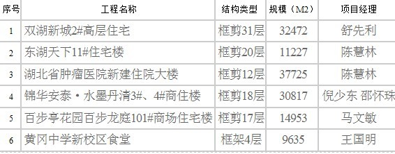 山河集團(tuán)2006年度湖北省建筑結(jié)構(gòu)優(yōu)質(zhì)工程一覽表