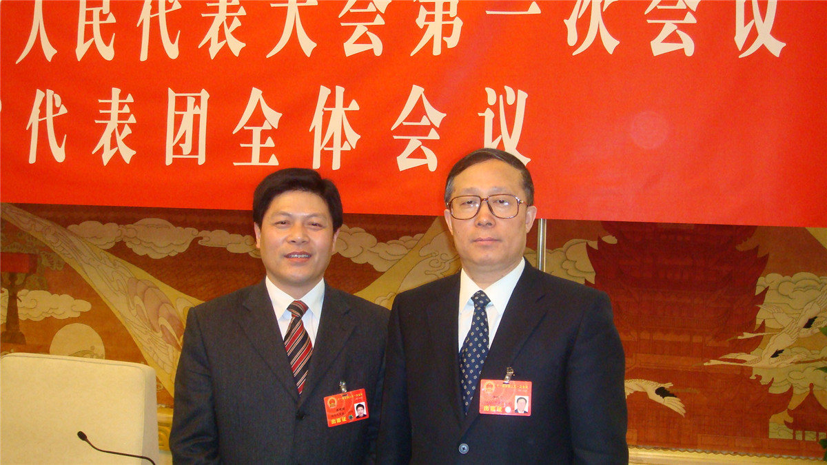 十一屆全國(guó)人大會(huì)議期間,山河集團(tuán)黨委書(shū)記、董事長(zhǎng)程理財(cái)同志(左)與湖北省委書(shū)記(現(xiàn)政治局委員天津市委書(shū)記)李鴻忠同志(右)合影