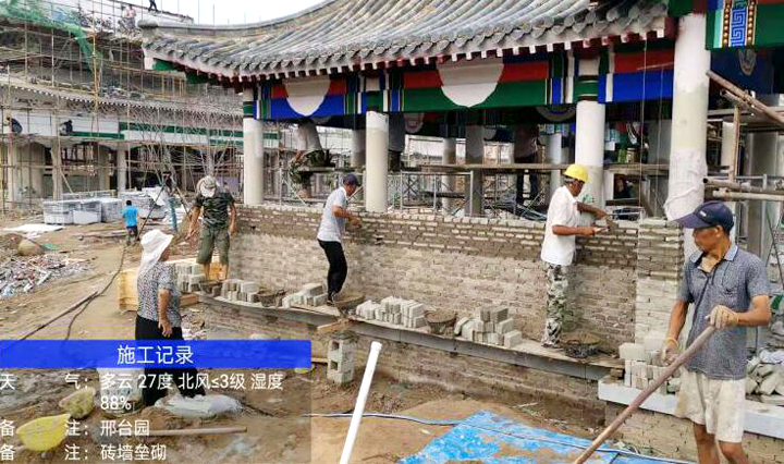 項目部嚴格按設計要求和施工規(guī)范,結合古建傳統(tǒng)工藝,按施工工序,自下而上施工,每完成一道工序,會同業(yè)主、監(jiān)理單位驗收合格后再進入下道工序。建設過程中,引入光、電、聲等藝術裝置,結合電腦程序、壓力傳感、太陽能等技術手段,創(chuàng)新景觀裝置的不同可能性,增加場地的趣味與互動性,帶來滿滿的活力與新鮮感。