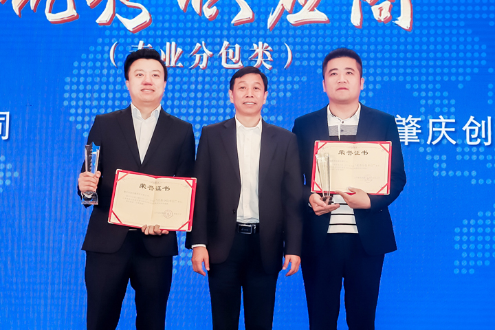 ▲常務(wù)副總經(jīng)理劉永國(guó)為優(yōu)秀供應(yīng)商(專業(yè)分包類)頒獎(jiǎng)