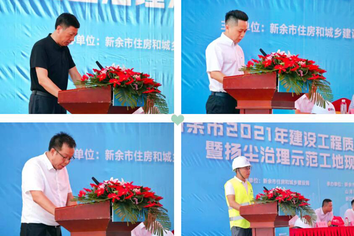 活動伊始,新余市建管局局長何祝生、新余市永越置業(yè)有限公司總經(jīng)理郜文、山河建設(shè)集團江西公司總經(jīng)理熊善杰分別發(fā)言,聯(lián)發(fā)永康狀元府項目經(jīng)理袁傳根就項目質(zhì)量安全、揚塵治理等方面進行了經(jīng)驗分享。