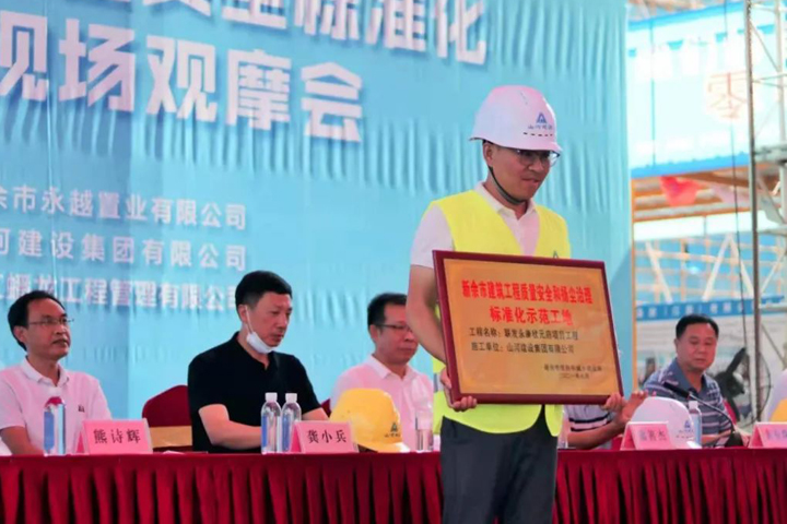 7月29日,新余市2021年建設(shè)工程質(zhì)量安全標準化暨揚塵治理示范工地現(xiàn)場觀摩會在山河建設(shè)集團江西公司承建的聯(lián)發(fā)永康狀元府項目舉行。新余市住建局副局長龔小兵、市建管局局長何祝生、市質(zhì)監(jiān)站站長龔宇新等領(lǐng)導(dǎo)出席活動,建設(shè)單位、監(jiān)理單位及新余市在建項目代表等400余人參加活動。