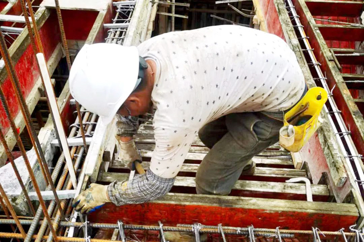 ▲廣州益云智慧物流產(chǎn)業(yè)孵化基地建設(shè)項目工人在進行柱箍筋綁扎