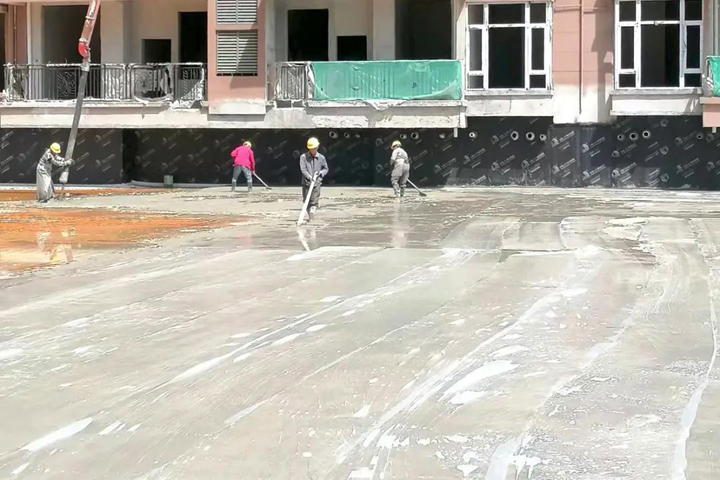 ▲信陽恒大御景灣項目工人進行地下室頂板防水保護層施工