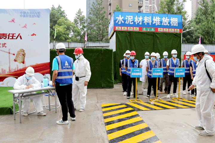 防疫部門工作人員抵達(dá)現(xiàn)場(chǎng),并將發(fā)熱人員轉(zhuǎn)運(yùn)至醫(yī)院后,項(xiàng)目部立即封鎖大門,排查密切接觸人員并安排隔離觀察,防疫演練結(jié)束。